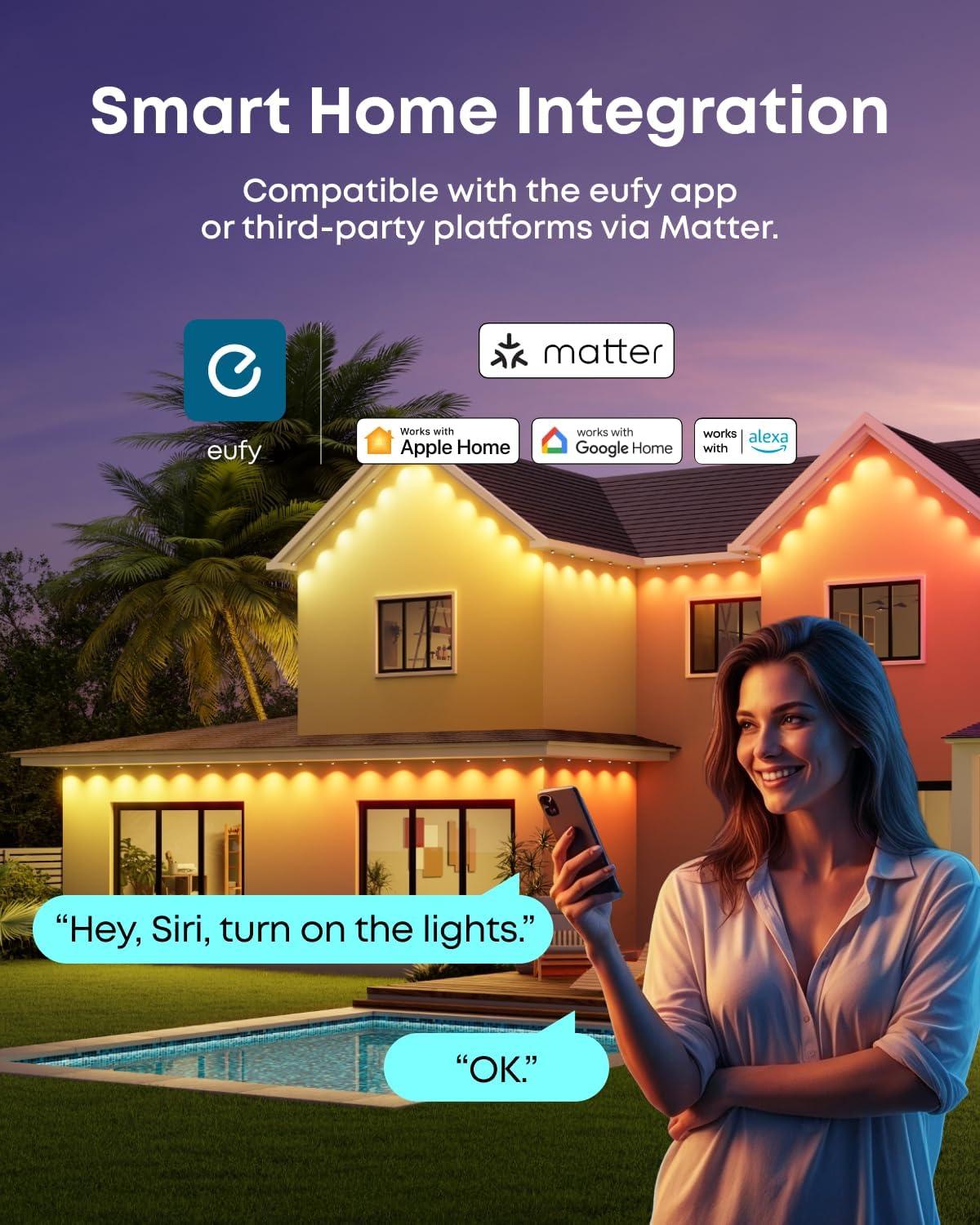 Smart Control for Enhanced Security: Link with eufy cameras, video doorbells, or video smart locks to trigger lighting effects via motion detection, or enable human detection with HomeBase 3 for even smarter automation.