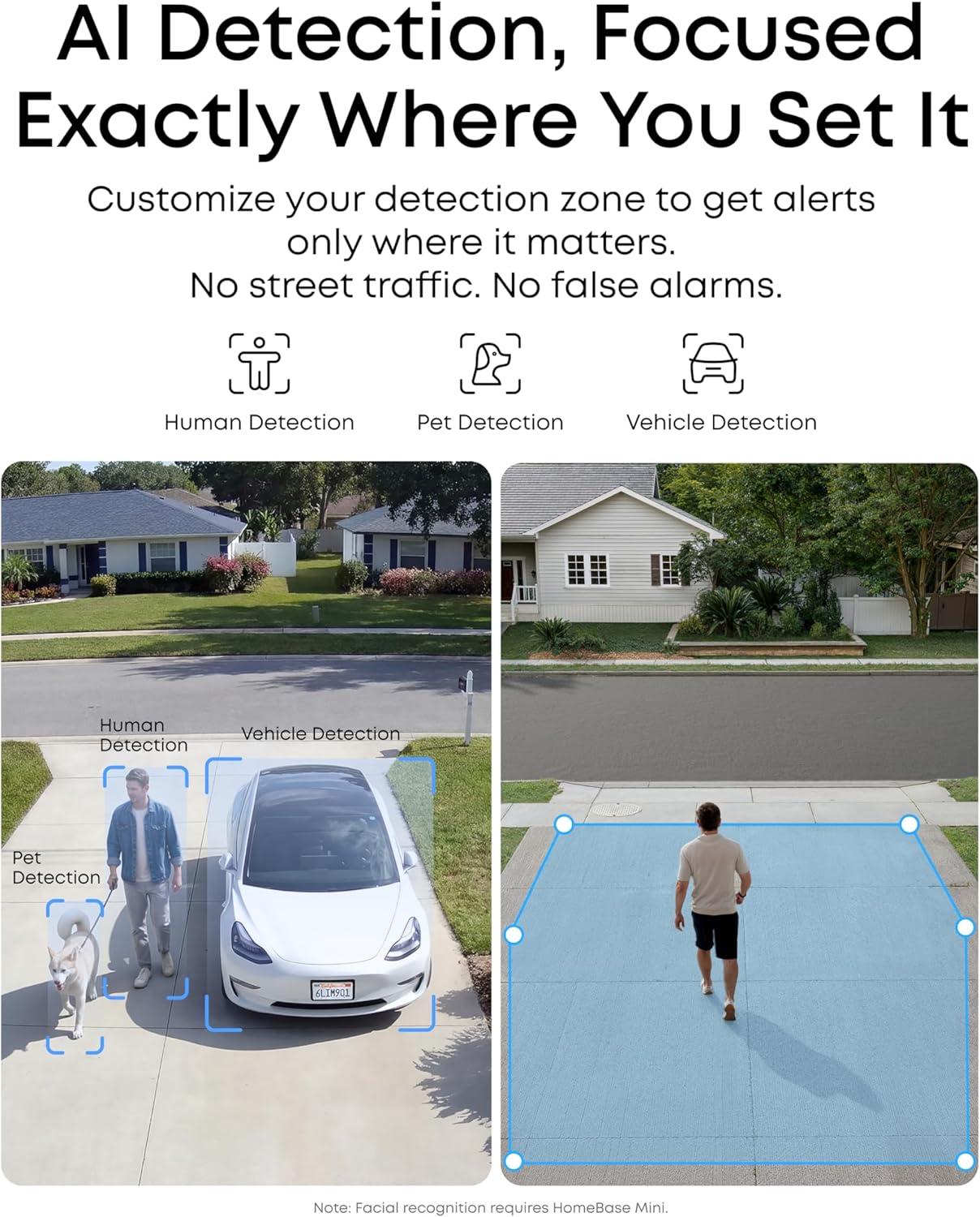 【𝐒𝐦𝐚𝐫𝐭 𝐀𝐈 𝐃𝐞𝐭𝐞𝐜𝐭𝐢𝐨𝐧】Instantly identify people, vehicles, and pets. The camera automatically tracks their movement to deliver highly relevant alerts and crystal-clear monitoring.