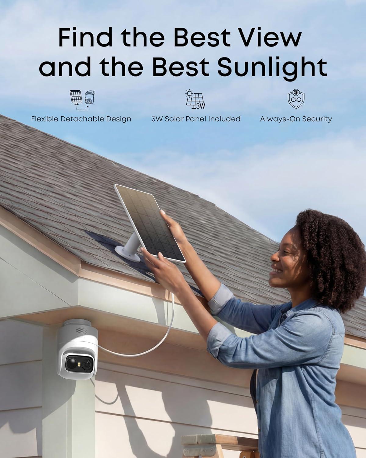 【𝐃𝐞𝐭𝐚𝐜𝐡𝐚𝐛𝐥𝐞 𝐒𝐨𝐥𝐚𝐫 𝐏𝐚𝐧𝐞𝐥𝐬 𝐟𝐨𝐫 𝐕𝐞𝐫𝐬𝐚𝐭𝐢𝐥𝐞 𝐈𝐧𝐬𝐭𝐚𝐥𝐥𝐚𝐭𝐢𝐨𝐧】Position each 3W solar panel for optimal sunlight while pointing the cameras exactly where you need them. Never compromise between viewing angle and power. Enjoy continuous charging with zero maintenance, rain or shine.