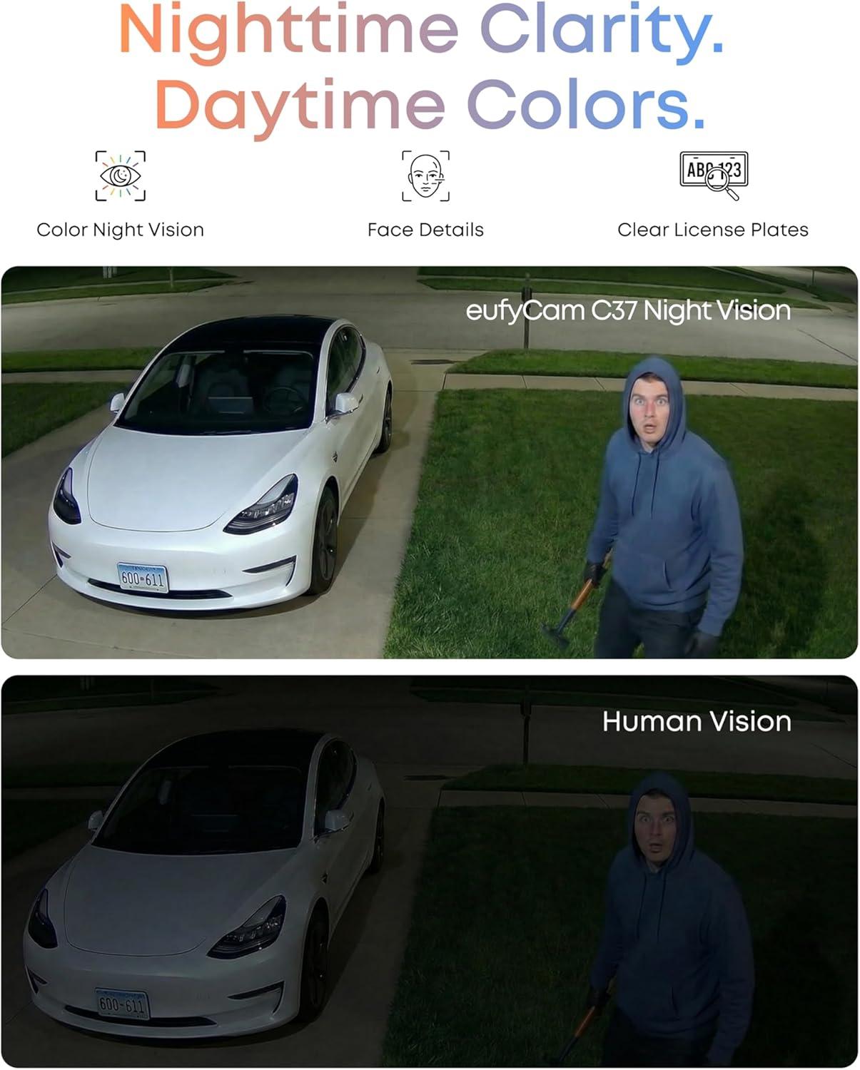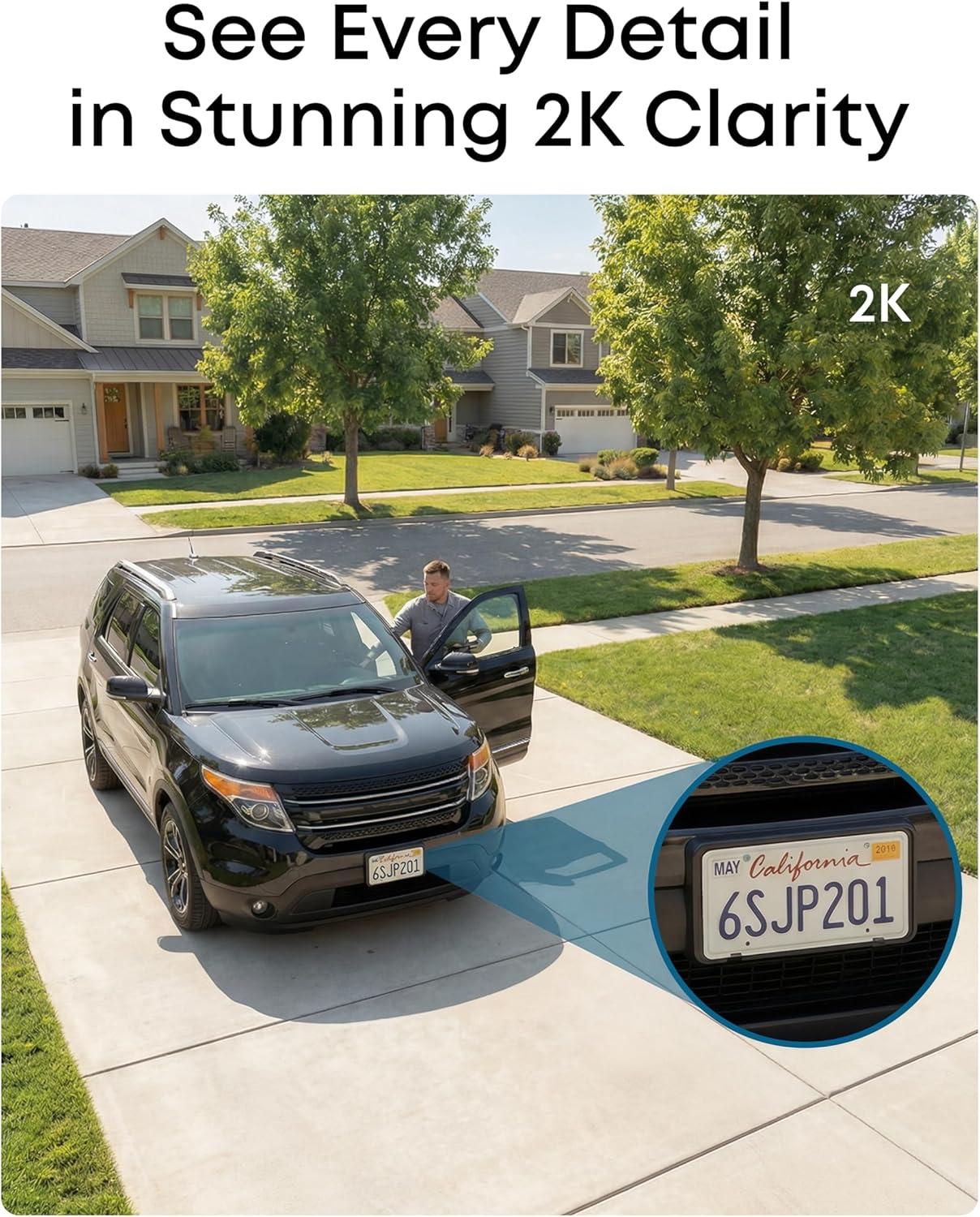 【𝟐𝐊 𝐂𝐨𝐥𝐨𝐫 𝐍𝐢𝐠𝐡𝐭 𝐕𝐢𝐬𝐢𝐨𝐧】Capture crystal-clear details with 2K resolution, delivering 77% more pixels than standard 1080p. The built-in spotlight illuminates faces, license plates, and clothing details in vivid color, even in total darkness.