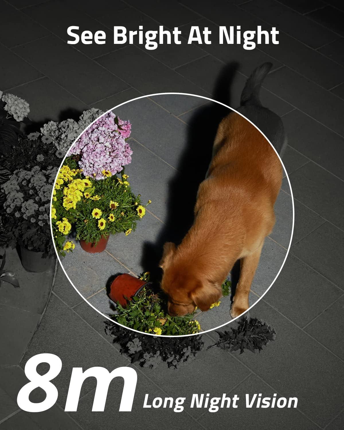 Light Up the Night: The ultra-bright spotlight switches on as soon as motion is detected, shining a light on any unwanted guests, while the color night vision picks out details in the darkness up to 8 meters away.