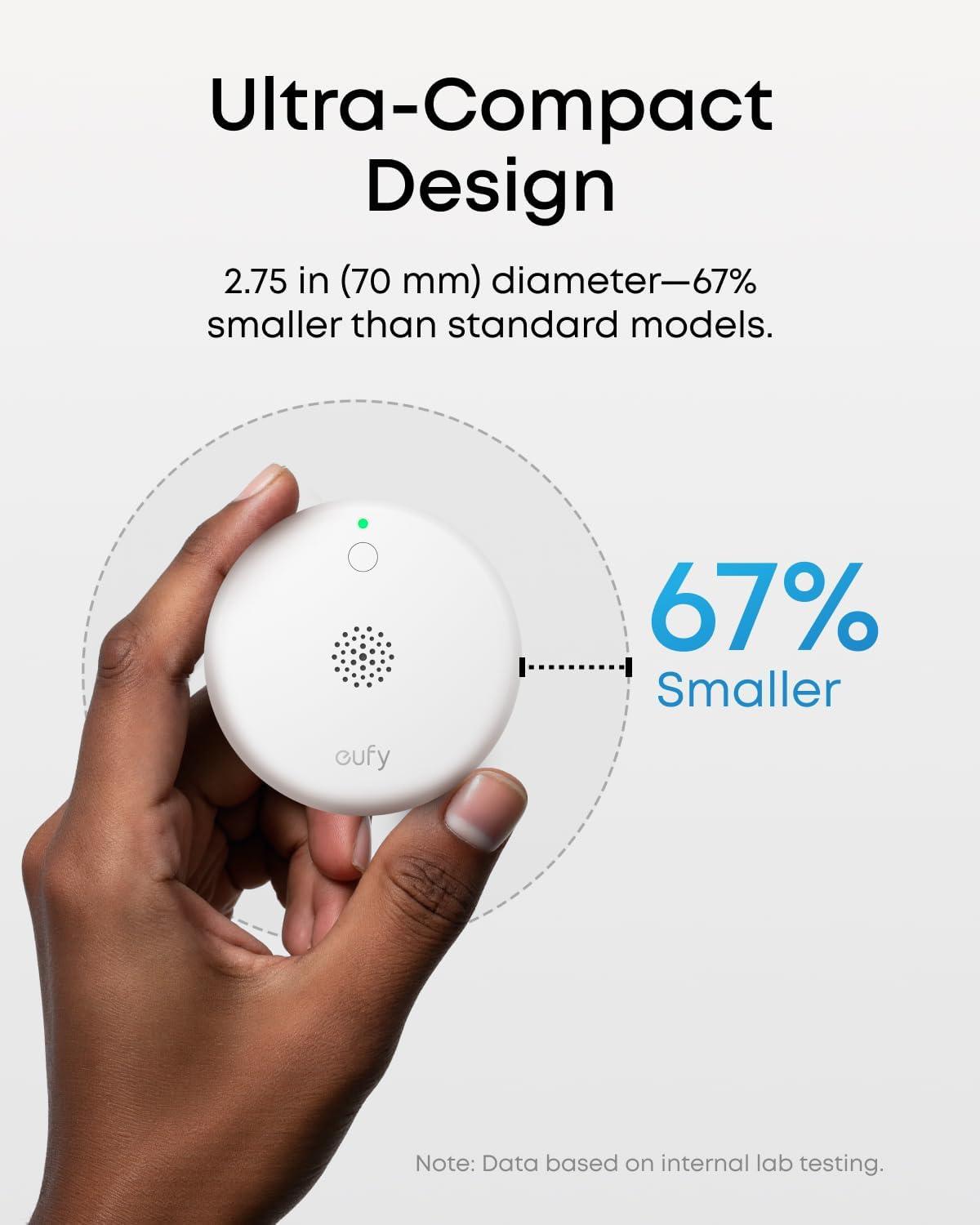 Ultra-Compact Modern Design: With a diameter of just 70 mm (2.75 in), this smoke detector is one-third the size of traditional models, blending seamlessly into any home environment.